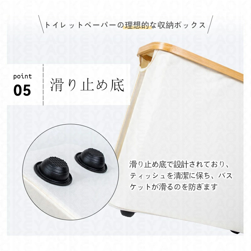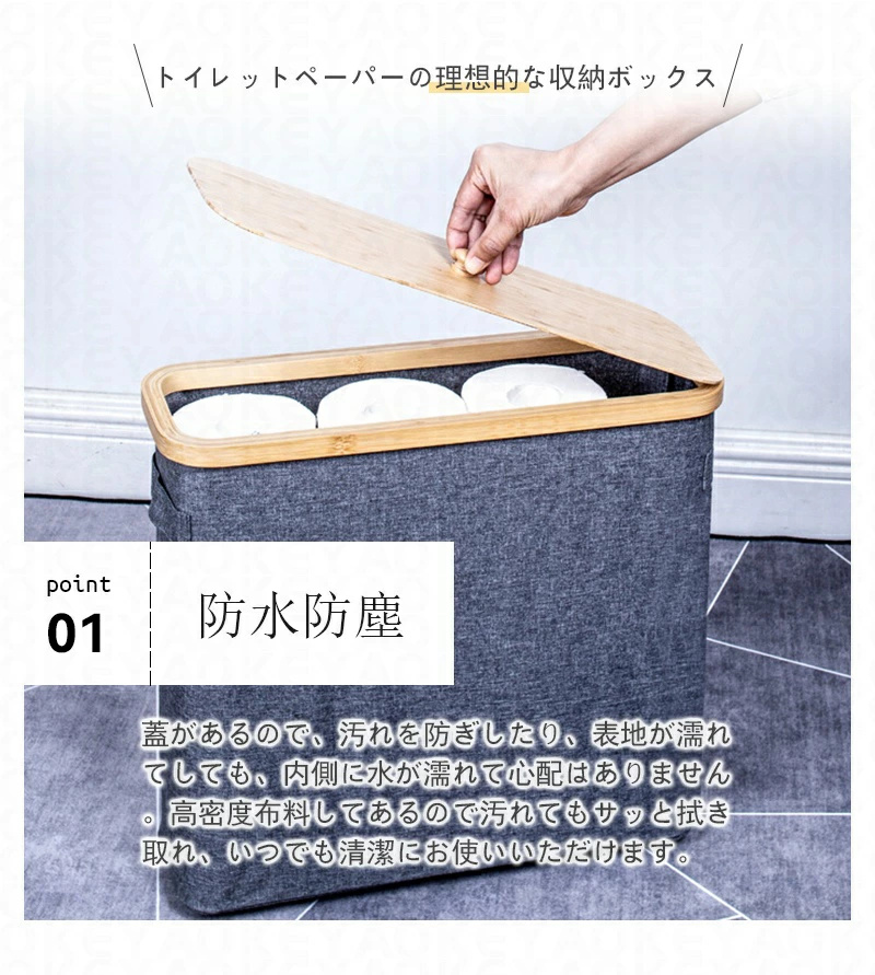 トイレットペーパー ボックスは600Dオックスフォードな高品質の軽くて丈夫な生地で作られて、耐久性と耐摩耗性、耐引裂性により、過酷な環境や日常の磨耗に耐える必要がある製品に最適です。さらに、トイレットペーパー ボックスは防水特性があるため、内容物を水による損傷から保護する必要がある製品への使用に適しています。トイレットペーパー ボックスは本物竹ハンドル付きオックスフォードの布と竹のハンドルで作られた素晴らしい艶と肌触りの良いです。