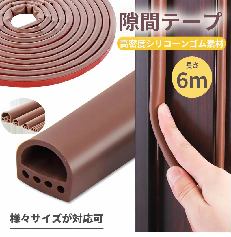 毎日の生活で気になるドアや窓の隙間風、外部の騒音、虫の侵入…これらを一気に解決する画期的な隙間テープが誕生しました!高密度シリコーンゴムが柔軟に変形しながらピタリと隙間を埋め尽くすため、従来品よりも格段に高い密着性を実現。冬の厳しい冷気も、夏の湿った空気も、一切シャットアウトします。