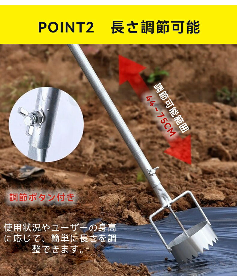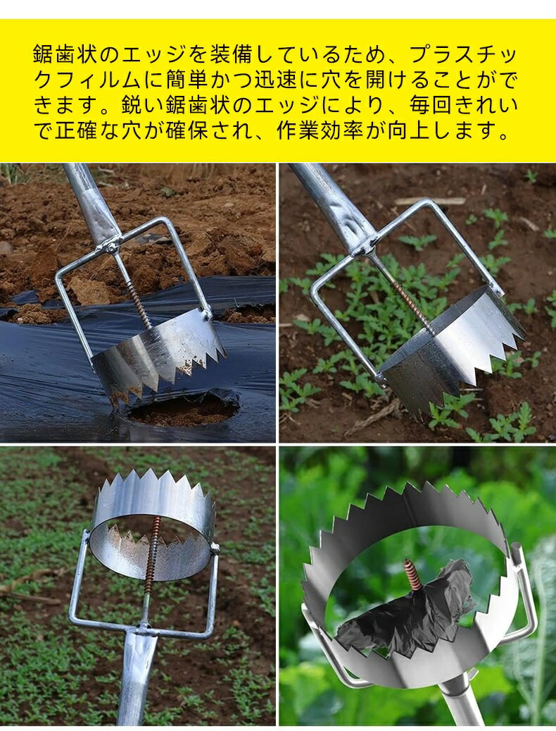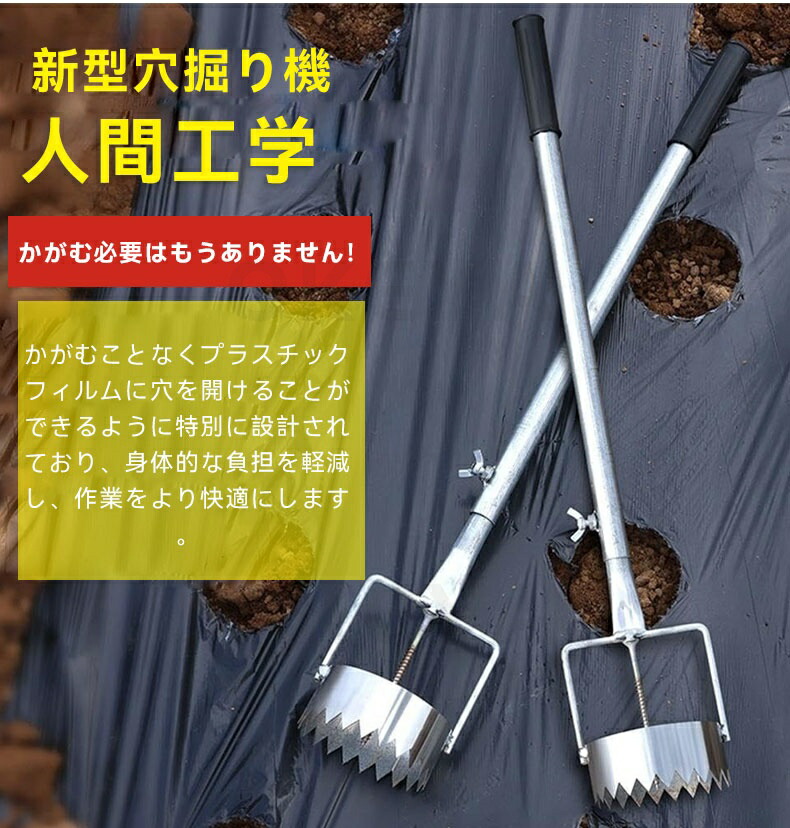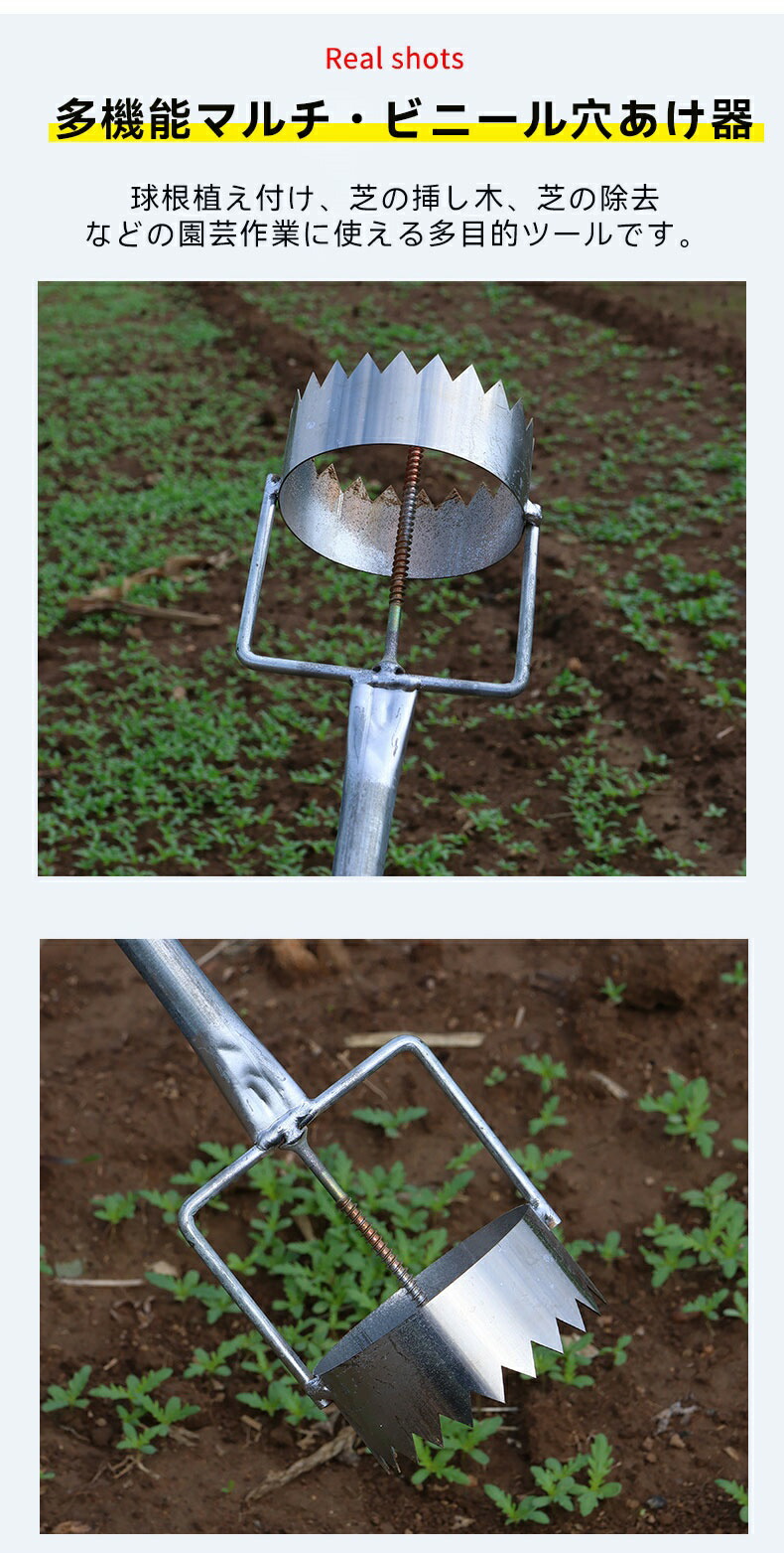 【2025新型穴掘り】穴掘り機 マルチ・ビニール穴あけ器 園芸 穴掘り 苗移植 マルチ穴あけ器 マルチの穴あけ 丸穴カット 時短 立ったまま使える 連続作業