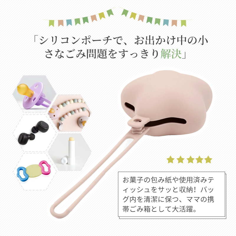 2点目300円!携帯ごみ箱 おしゃぶりケース シリコンポーチ おしゃれ ぶりホルダー ごみ入れ 星型 おやつケース くすみカラー 落下防止 洗える お出かけ 持ち運び