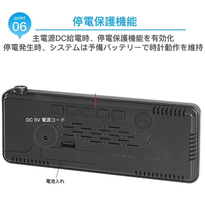 デジタル時計 投影時計 LED大画面 プロジェクションクロック 壁投影 天井へ投影置き時計 180°反転可能 温度・湿度・カレンダー表示 3段階明るさ調節