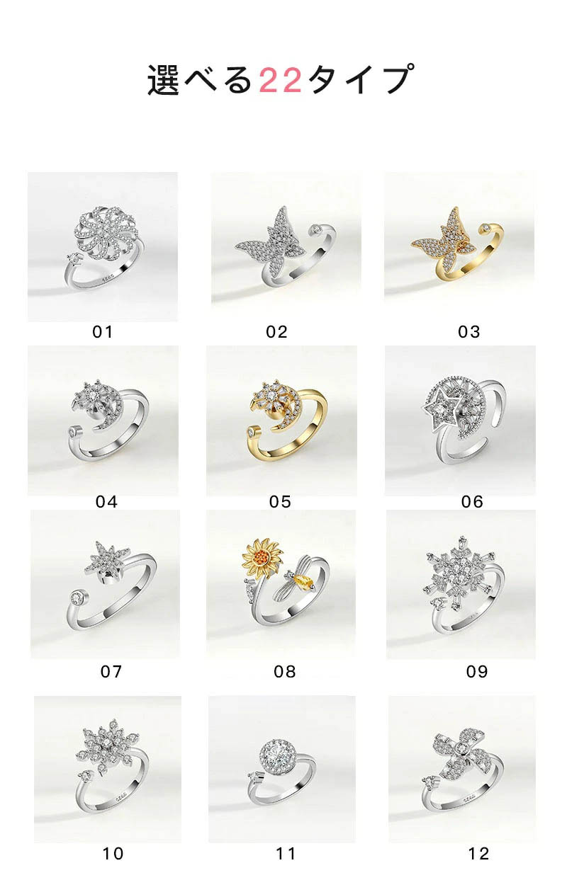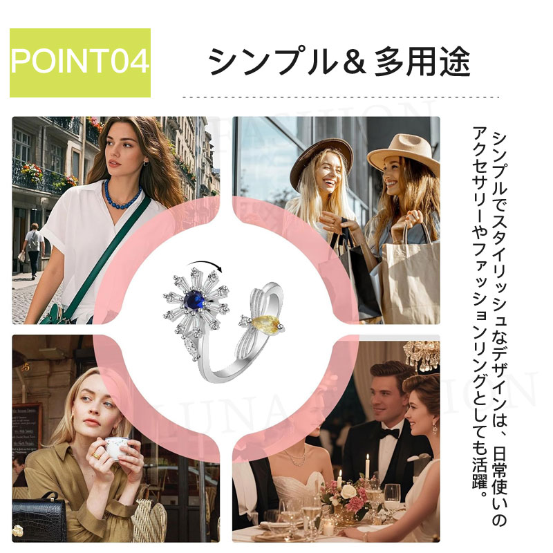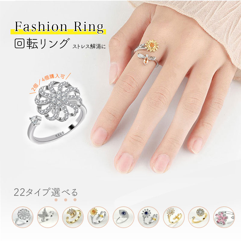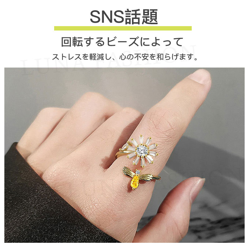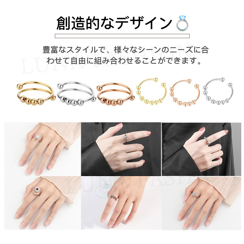 ストレス解消リング 指輪 リング レディース 金属 ビーズ付き 可動ランナー ストレス解消 不安を和らげるリング 調節可能 回転 オープンセット 不安解消 ギフト