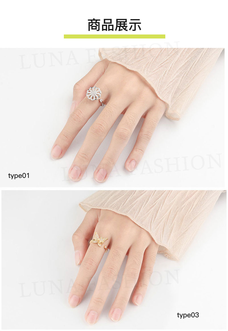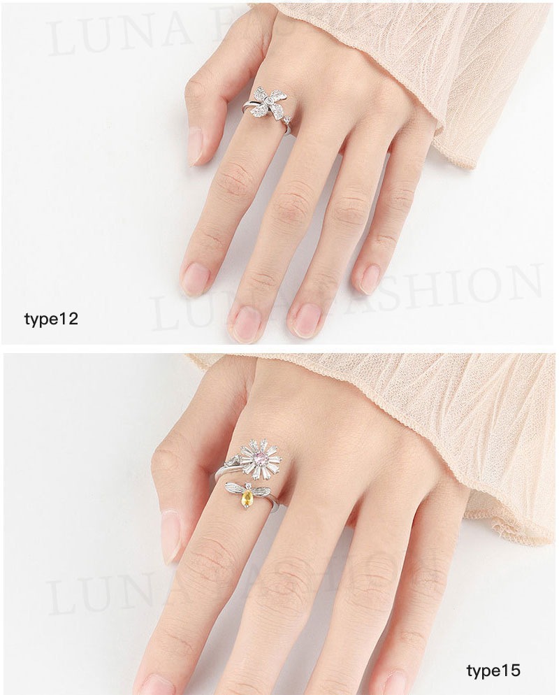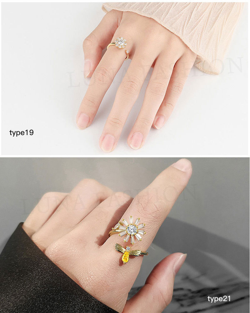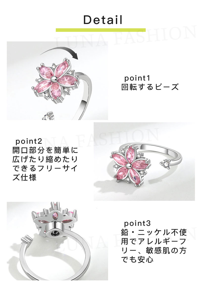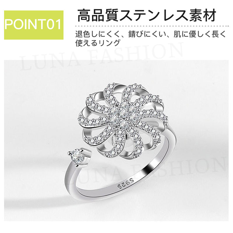 ストレス解消リング 指輪 リング レディース 金属 ビーズ付き 可動ランナー ストレス解消 不安を和らげるリング 調節可能 回転 オープンセット 不安解消 ギフト