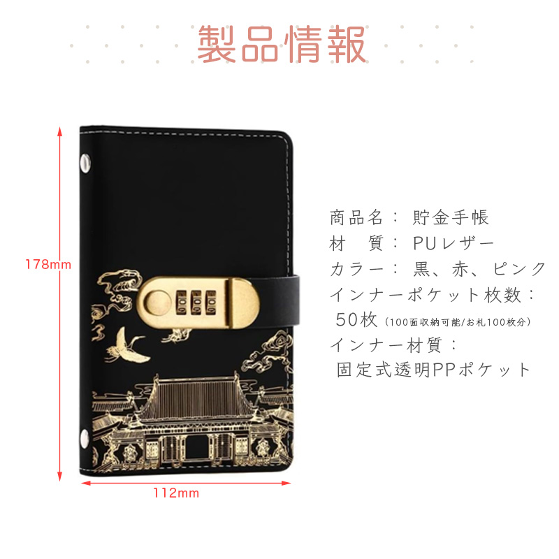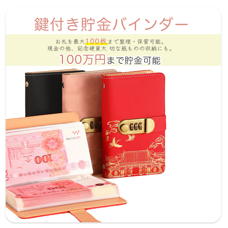 貯金箱 お札 100枚収納可能 貯金ファイル 貯金バインダー 貯金手帳 おもしろ お札封筒貯金 おしゃれ 貯金ノート 家計管理 可愛い 大容量 ダイヤルロック付き