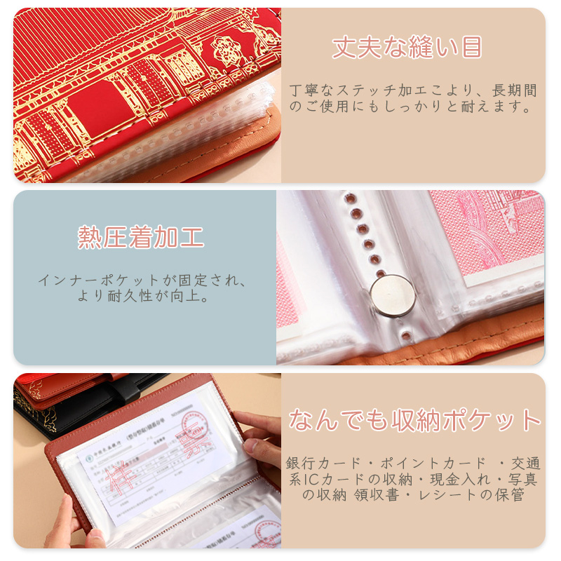 【貯金箱 札 - 貯金手帳】手帳型で使いやすく、いつでもどこでもスマートに紙幣を管理できます。貯金だけでなく、記念紙幣の保管にも役立ちます。