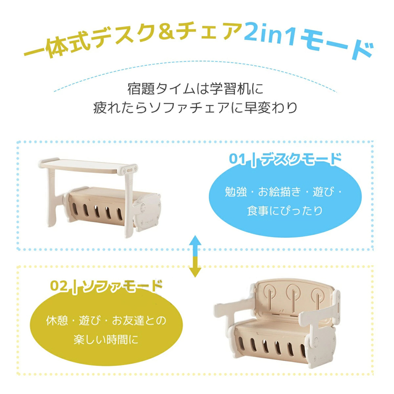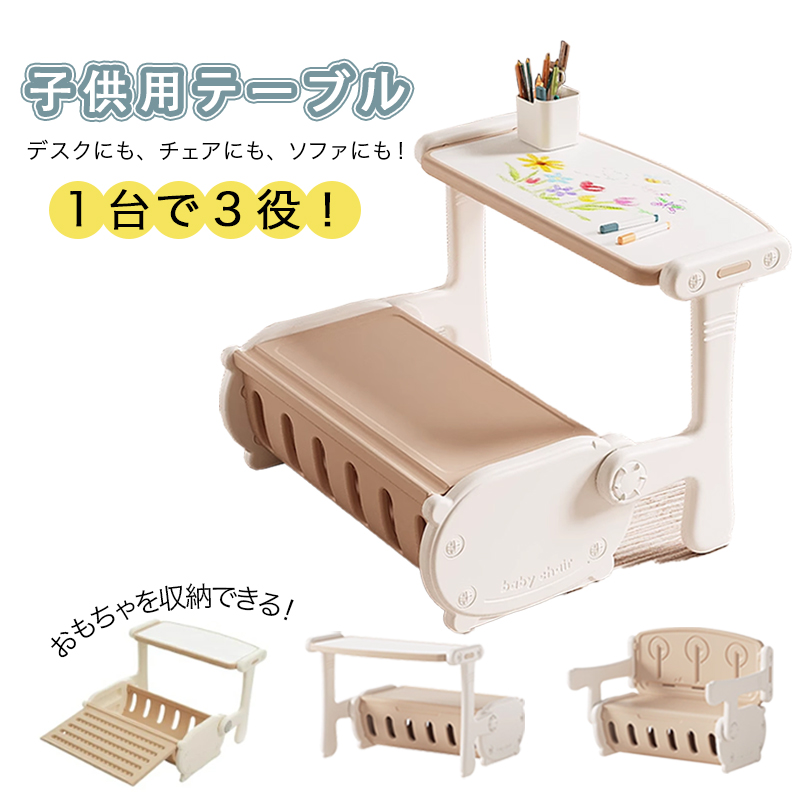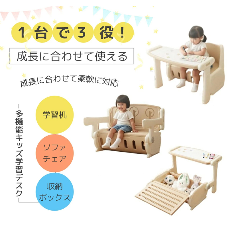 子供用テ一プル一体式デスク チェア 多機能キッズ学習デスク 1台3役 勉強机 学習机 ソファチェア 収納ボックスに変形 工具不要