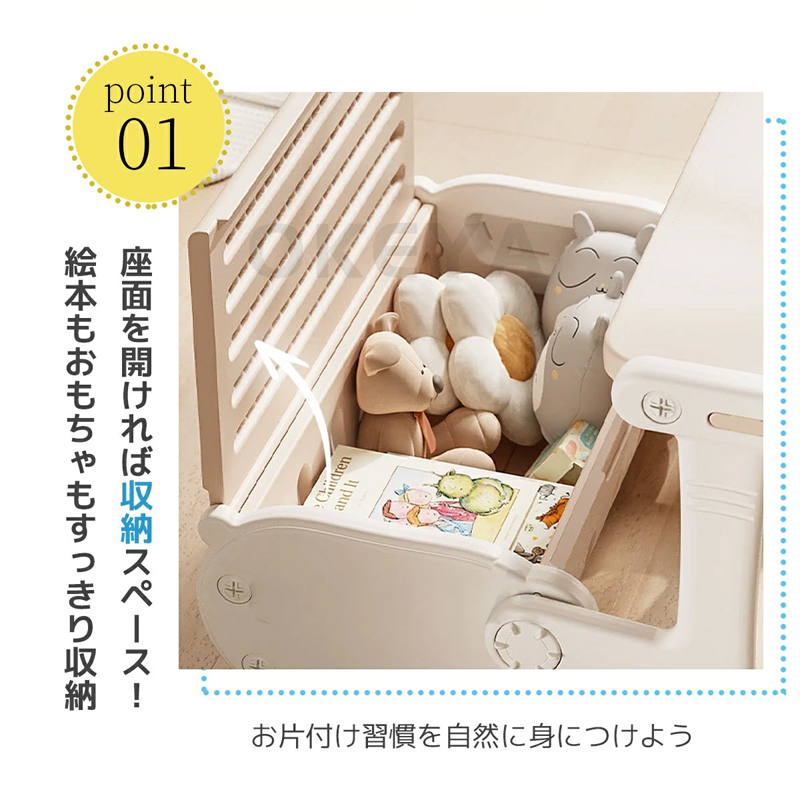 デスクとして、チェアとして、ソファとして、さらには収納ボックスとして、お子様の暮らしに合わせて自由に形を変えます。