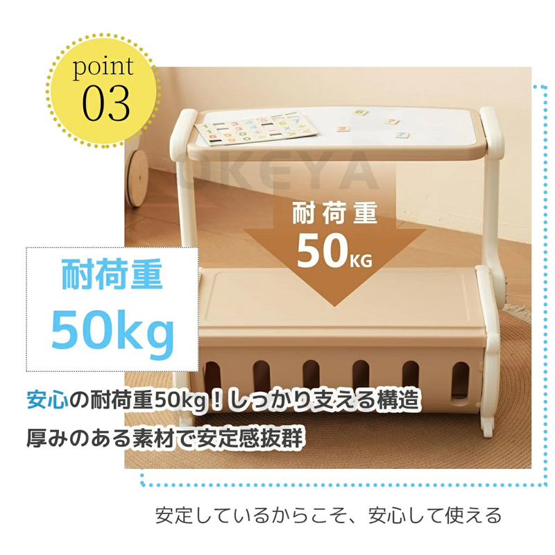 耐荷重50kgの高強度HDPE素材を使用し、安全性を確保。3歳以上のお子様に最適です。