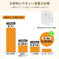 暗い場所で人や動物の動きを感知すると自動で点灯し、感知範囲を離れてから約20秒後に自動で消灯します。