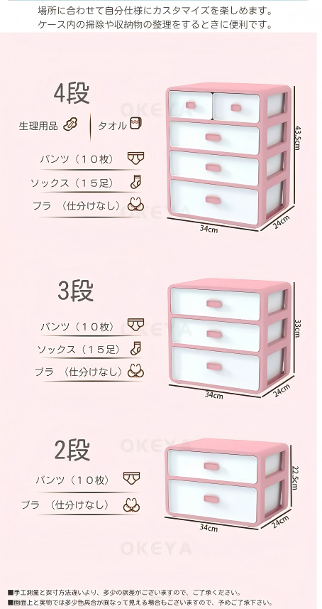 サイズ 四段タイプ:長さ33cm 幅さ24cm 高さ43cm