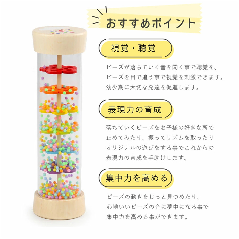 ビーズレインボー 誕生日 お祝い クリスマスプレゼント おもちゃ ガラガラ ラトル ビーズレイン スティック 赤ちゃん 6ヶ月 9ヶ月 1歳 木製 木 出産祝い