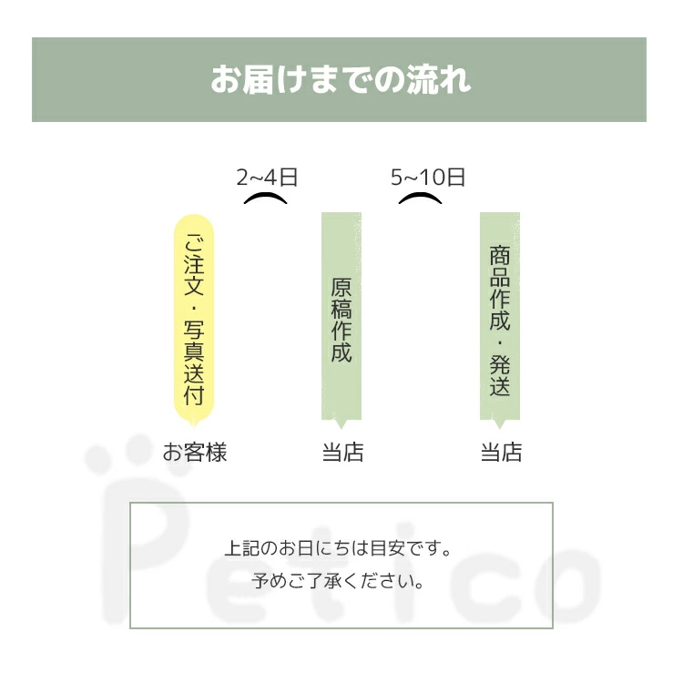 1.ご注文確認(入金後)→一週間以内に「お問い合わせ」またはメールにてお写真と詳細を送ってください。