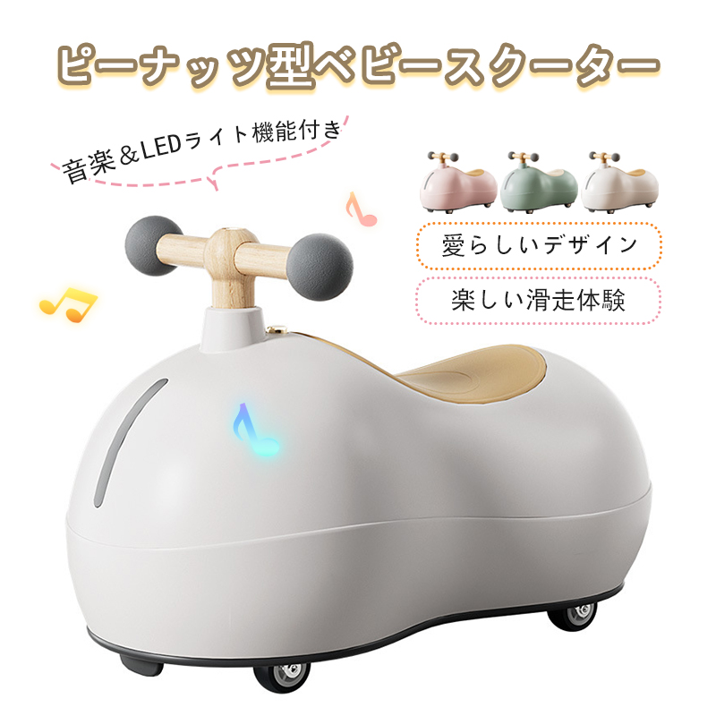ベビースクーター ピーナッツ型ベビースクーター 超静音ローラー 360°スムーズ旋回 足こぎ式ファーストバイク 6ヶ月から3歳対応 ベビーカー兼用 安全乗用玩具