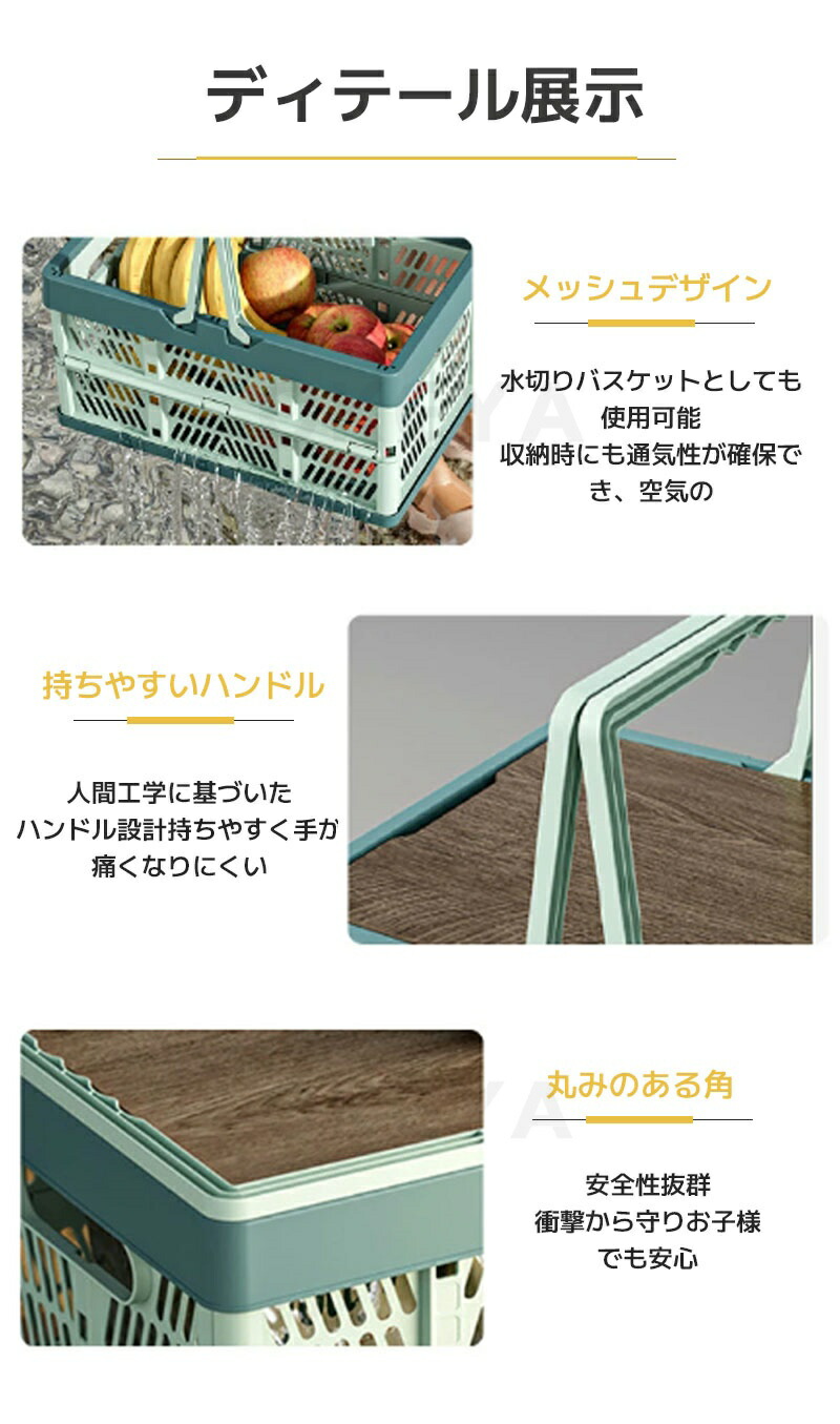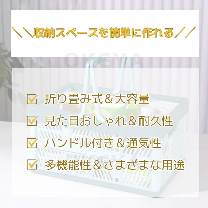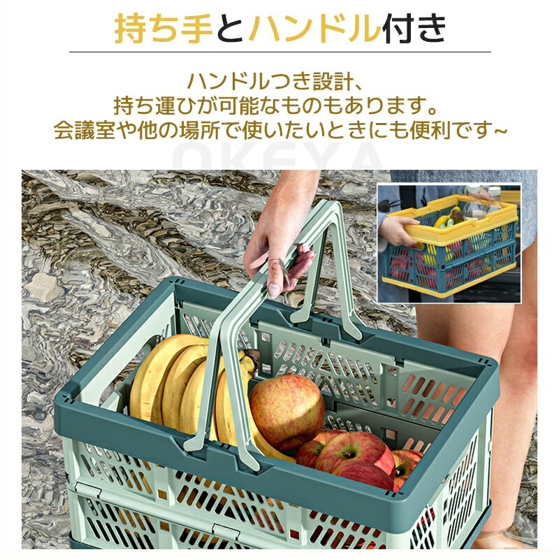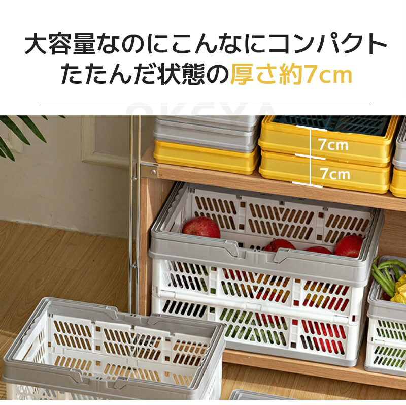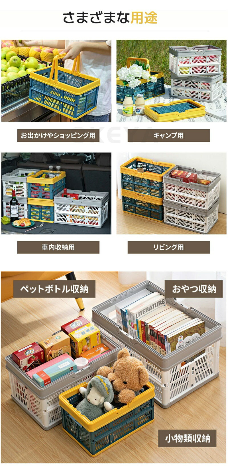 この折りたたみ式バスケットは、買い物やレジャー、洗濯物の収納に最適なアイテムです。最大33.6Lの容量を持ち、持ち手付きで持ち運びが簡単です。車内でのトランク収納にも便利で、使わないときはコンパクトに折りたためます。おしゃれでかわいいデザインが特徴で、プレゼントやギフトにもぴったりです。多用途に使えるふたも付属しており、さまざまなシーンで活躍します。