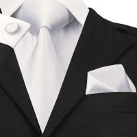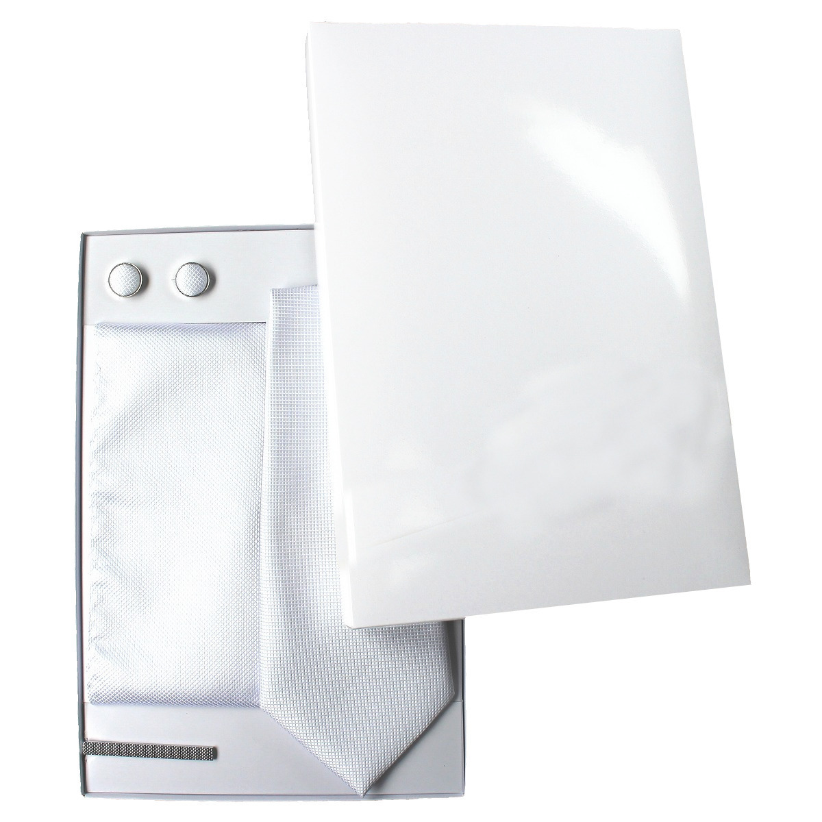 化粧箱入 ネクタイ 4点セット ポケットチーフ カフスボタン タイピン パールホワイト 結婚式 フォーマル アイロン済 送料無料 宅配便