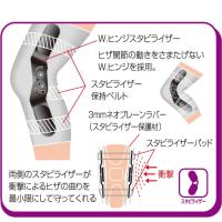 ・膝皿の下(膝蓋骨下部)には前・後十字じん帯をガードするU型パットを付け、3rdベルトでじん帯を守り、本体のズレを防止します。