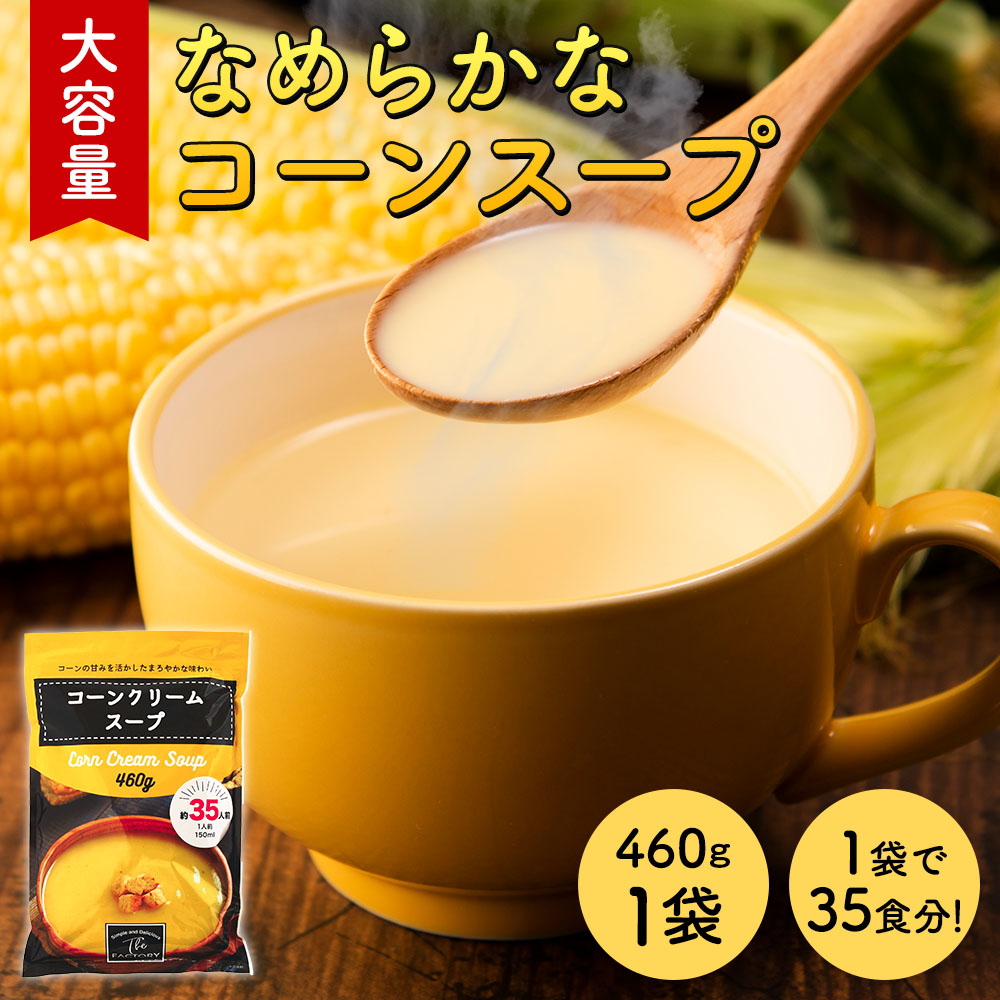 | COMMENT -商品について- 【SONOMA GARDEN FOODS オリジナル コーンスープ】 The SOUP Factry コーンクリームスープ 業務用サイズ(460g) お湯を注ぐだけの大容量コーンスープ。この1袋で約35杯分! 簡単に作れて美味しいからご自宅用としてはもちろん。オフィスの休憩室など大勢が利用するシーンで重宝する大容量コーンスープです。 【お得な大容量タイプ!】 嬉しいジップ付きの袋です! 【業務用向け】鍋に1Lのお湯を沸かし、沸騰したら本品115gを入れよくかき混ぜて下さい。 【ご自宅】大さじ1+1/2 杯(約13 g)を150mlの熱湯に溶かしてよくかき混ぜてください。 【自分の好みでお好みの濃さでお召し上がりください。】 「市販のコーンスープは濃いな、、、」「薄いな、、、」って思っていた方にはぴったり。 ※目安は1袋で35杯分です 【粒子が細かいのでダマになりにくい!】 ちょっと裏技 普段は粉(スープ)を入れてからお湯を注ぐと思いますが、お湯を注いでからスープを入れた方が実は、溶けやすいんです。 【なめらかな口当たり】 風味豊かな甘味のある粉末コーンスープ。 自分で濃さを調整できるのも嬉しい逸品です。 【アレンジいろいろ】 ・ドリアやパスタにもアレンジ自在! ・カレーに混ぜれば お子様カレーに変身! 【色々なシーンで活躍します】 簡単に作れるのが嬉しいコーンスープ ご自宅や、オフィスの休憩室にぜひ 【コーンスープ】【コーンクリームスープ】【コーンポタージュ】【コーンクリームポタージュ】【コンポタ】【とうもろこしスープ】【とうもろこしポタージュ】【スープ】【ポタージュ】【粉末スープ】【大容量コーンスープ】【大容量コーンクリームスープ】【大容量コーンポタージュ】【大容量コーンクリームポタージュ】【大容量コンポタ】【大容量とうもろこしスープ】【大容量とうもろこしポタージュ】【大容量スープ】【大容量ポタージュ】【大容量粉末スープ】【業務用コーンスープ】【業務用コーンクリームスープ】【業務用コーンポタージュ】【業務用コーンクリームポタージュ】【業務用コンポタ】【業務用とうもろこしスープ】【業務用とうもろこしポタージュ】【業務用スープ】【業務用ポタージュ】【業務用粉末スープ】【インスタントスープ】【休憩室用コーンスープ】【休憩室用スープ】 SPEC -商品詳細-