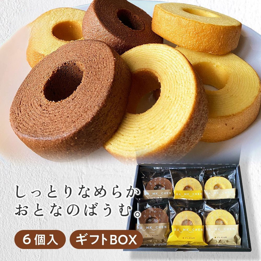| COMMENT -商品について 【しっとりなめらか おとなのばうむ 3種×2個セット ギフト】 当店イチオシのバウムクーヘン ふんわり薄く何層にも焼き重ねた、しっとりなめらかな食感のおとなのばうむ。 一度で食べきりやすいサイズでティータイムにもぴったり!! 【当店イチオシのバウムクーヘン】 ふんわり薄く何層にも焼き重ねた、しっとりなめらかな食感のおとなのばうむ。 一度で食べきりやすいサイズでティータイムにもぴったり!! 【世代を超え、愛されるお菓子づくり】 「しっとりなめらかおとなのばうむ」を作っているのは岐阜県のお菓子メーカー「ローヤル製菓」さん。1965年の創業から、長く愛される技術と想いを持った洋菓子ブランドです。 1時間ほどかけてじっくり焼き上げました。 生地の状態を見ながら焼く時間や温度も微調整しているから美味しくやきあがります。 【口どけの良い、しっとり食感】 ふんわり薄く何層にも重ねた、しっとりなめらか食感のバウムクーヘンです。 【好きな時に食べられる、個別包装】 1個1個包装されているので鮮度が保たれます。 食べたいときに食べたい分だけお召し上がれます。 【大人のバウム】【おとなのバウム】【バウムクーヘン】【バウム】【大人のばうむ】【おとなのばうむ】【ばうむくーへん】【ばうむ】【大人のバーム】【おとなのバーム】【バームクーヘン】【バーム】【大人のばーむ】【おとなのばーむ】【ばーむくーへん】【ばーむ】【プレーン】【レギュラー】【ベーシック】【カカオ】【チョコレート】【ココア】【チョコ】【メイプル】【メープル】【メイプルシロップ】【メープルシロップ】 SPEC -商品詳細-
