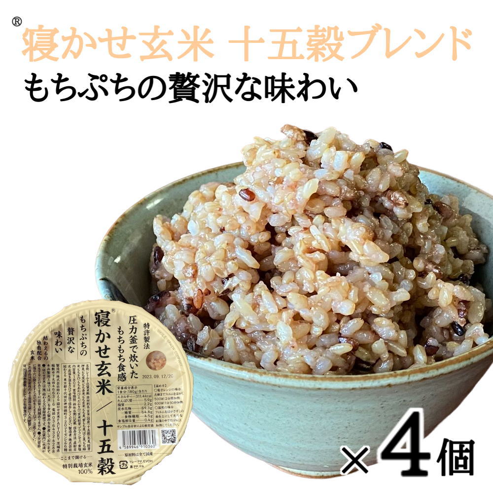 | COMMENT -商品について- ーーー健康も美味しいも叶える「一日一膳、玄米生活」ーーー 圧力鍋で炊いた玄米を数日寝かせて作るのが「寝かせ玄米?」 食べにくい・美味しくない、という今までの玄米の概念をくつがえす、もっちもち食感とお米の甘みが特徴です。 香ばしく香り豊かな「十五穀ブレンド」。 雑穀のもちもちぷちぷちとした食感と、味わいもあり、満足できる食べ応えです。 十五種類の雑穀で料理に負けない味わいなので、しっかりした味付けの料理とも相性がいいです。 冷めても美味しいのでおむすびやお弁当にもおすすめです。 SPEC -商品詳細-