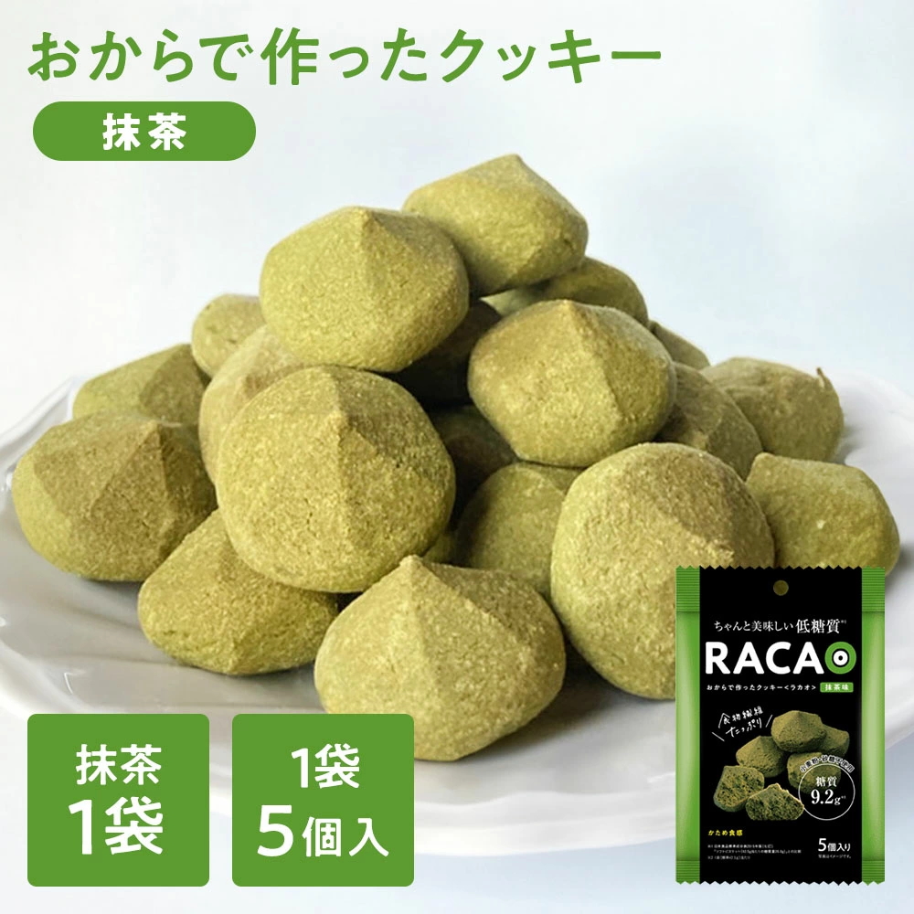 ※03月12日賞味期限※おからで作ったクッキー抹茶味 RACAO(ラカオ)(5個)緑茶 小麦粉不使用 砂糖不使用 小麦粉ゼロ 砂糖ゼロ(送料無料) おからクッキー(常温便)