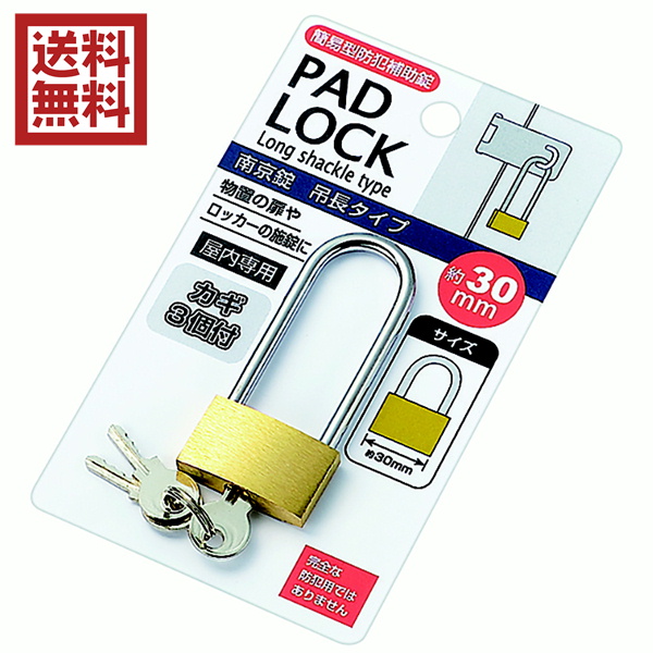 南京錠 吊長タイプ 約30mm 鍵 送料無料
