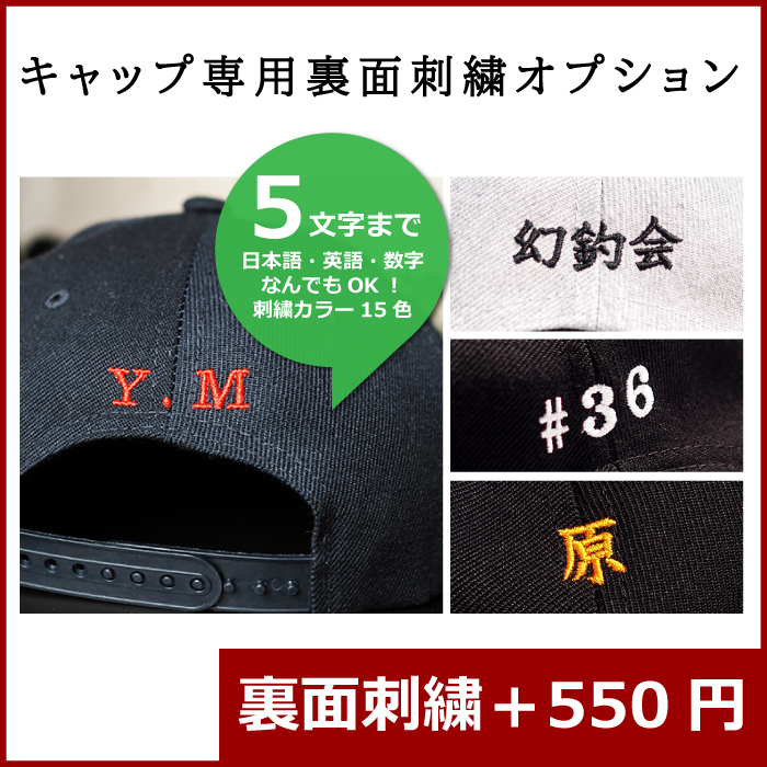 キャップ専用 裏面刺繍オプション ※キャップと一緒にご注文のお客様のみ購入可能