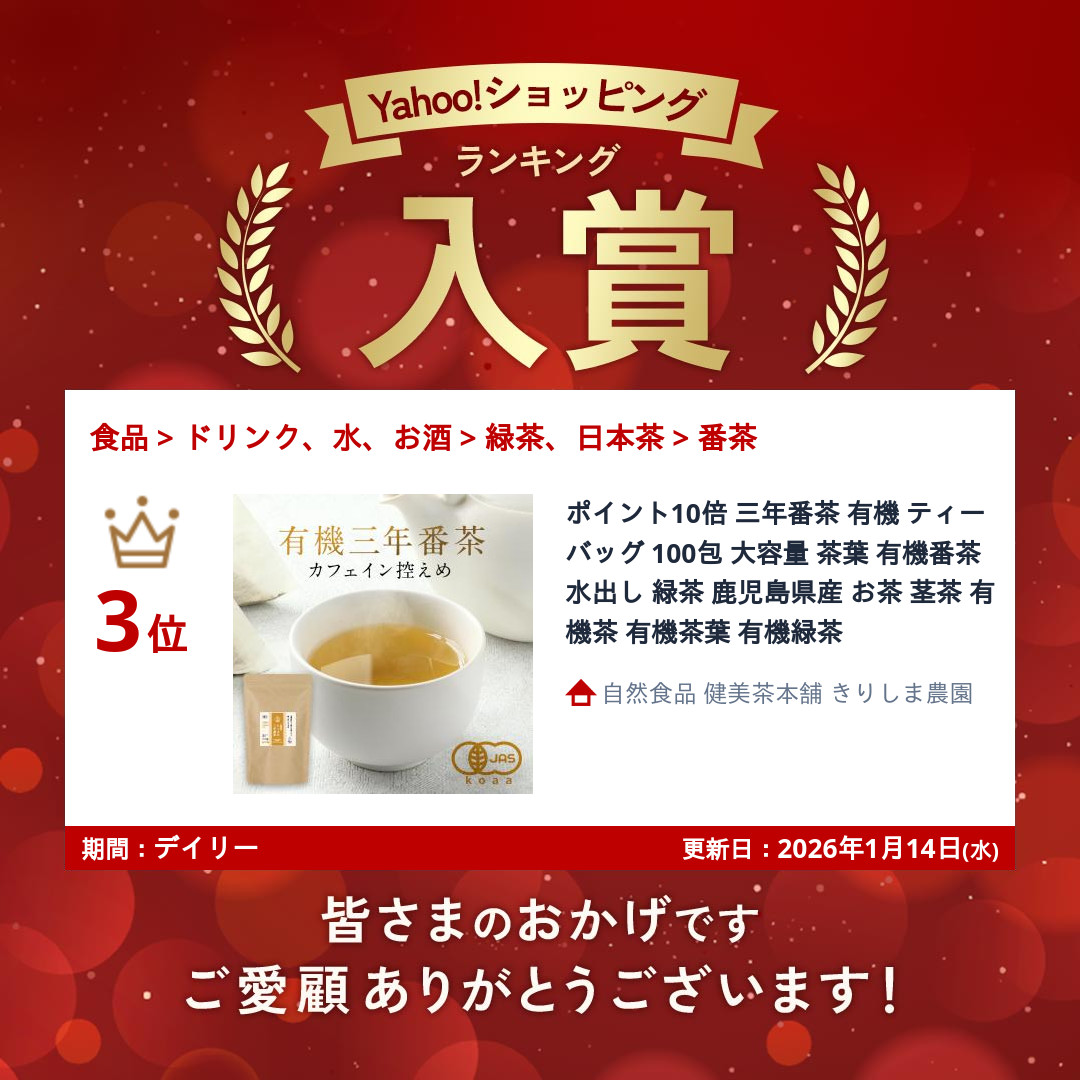 三年番茶 有機 ティーバッグ 100包 大容量 茶葉 有機番茶 水出し 緑茶 鹿児島県産 お茶 茎茶 有機茶 有機茶葉 有機緑茶 超pay祭 超p祭 超pay