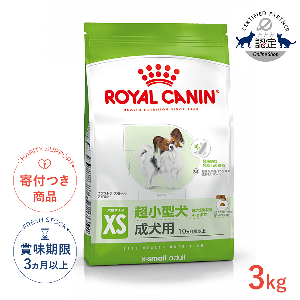 ロイヤルカナン エクストラ スモール アダルト 3kg / 超小型犬(成犬時体重4kgまで)成犬用(生後10ヵ月齢以上) / SHN 犬 ドライフード ジッパー有り