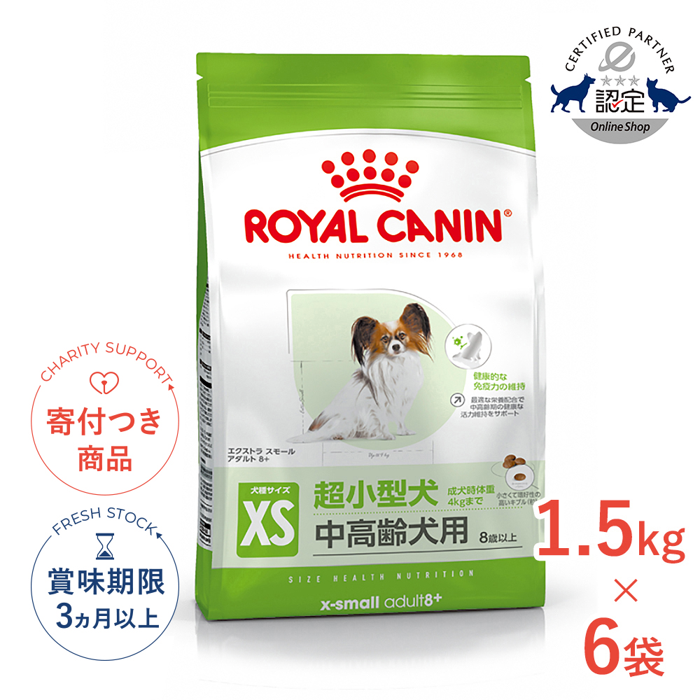 【お得な6個セット】ロイヤルカナン エクストラ スモール アダルト 8+ 1.5kg / 超小型犬(成犬時体重4kgまで)中高齢犬用(8歳以上) / SHN 犬 ジッパー有り
