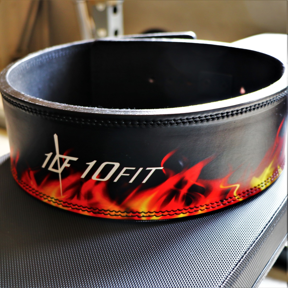レバーアクションベルト パワーベルト リフティングベルト ブラック 赤い炎 レザー 筋トレ 10FIT TE-115
