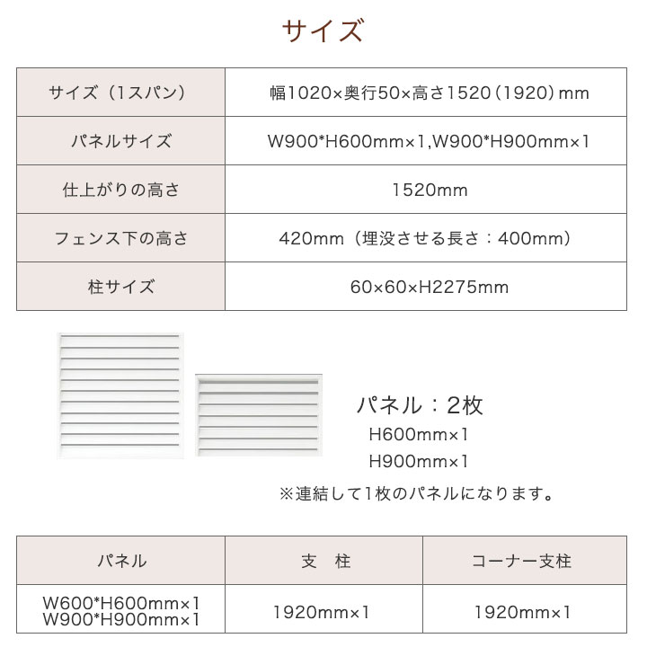 仕上がり高さ:1520mm(※専用柱を使用した場合)