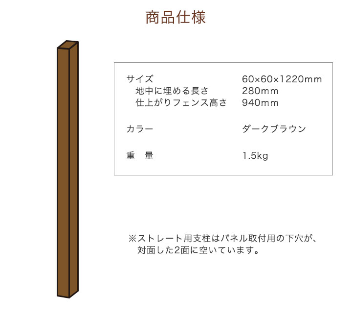 フェンス アルミ支柱 目隠し (セーヌ用) ストレート 仕上がり高さ90cm 単品 外構 DIY ダークブラウン 在庫限り