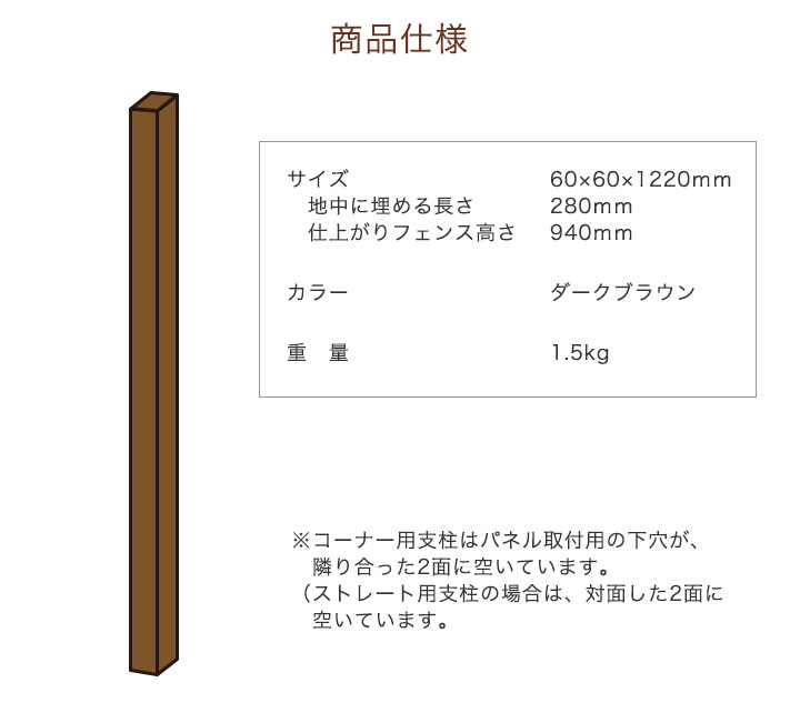 フェンス アルミ支柱 目隠し (セーヌ専用) コーナー 仕上がり高さ90cm 単品 外構 DIY ダークブラウン 在庫限り