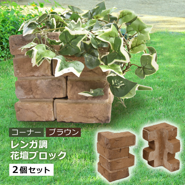 花壇ブロック レンガ風 置くだけ コーナー ブラウン 2個セット おしゃれ 在庫限り