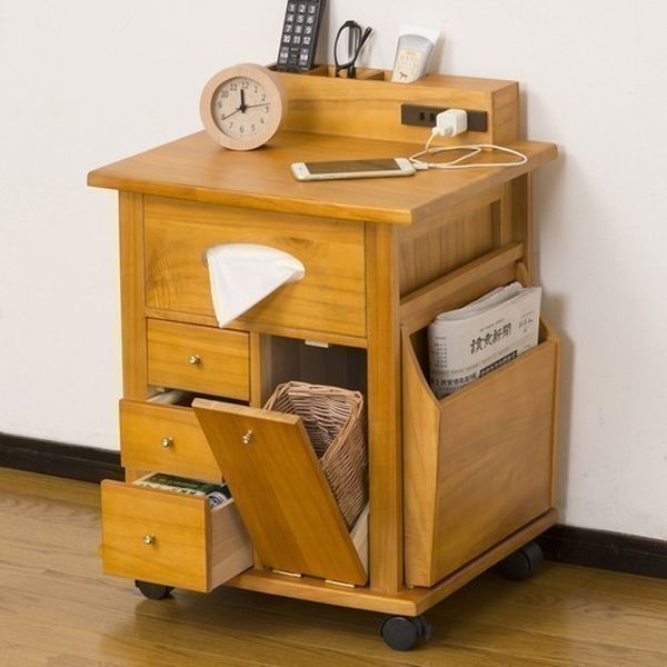 ベッド周辺の必要な物が1ヶ所にまとまり、コンセント付で充電もでき、ライトも使えます。
