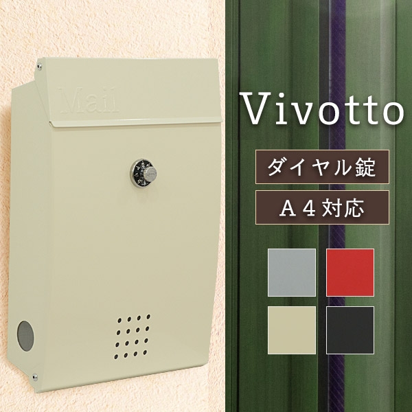 おしゃれ 壁掛けポスト ダイヤル錠 A4 戸建ポスト メール便 スチール製 ヴィボット アイボリー [売り尽くし!在庫処分セール]