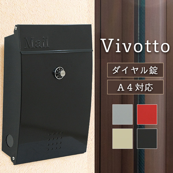 おしゃれ 壁掛けポスト ダイヤル錠 A4 戸建ポスト メール便 スチール製 ヴィボット ブラック [売り尽くし!在庫処分セール]