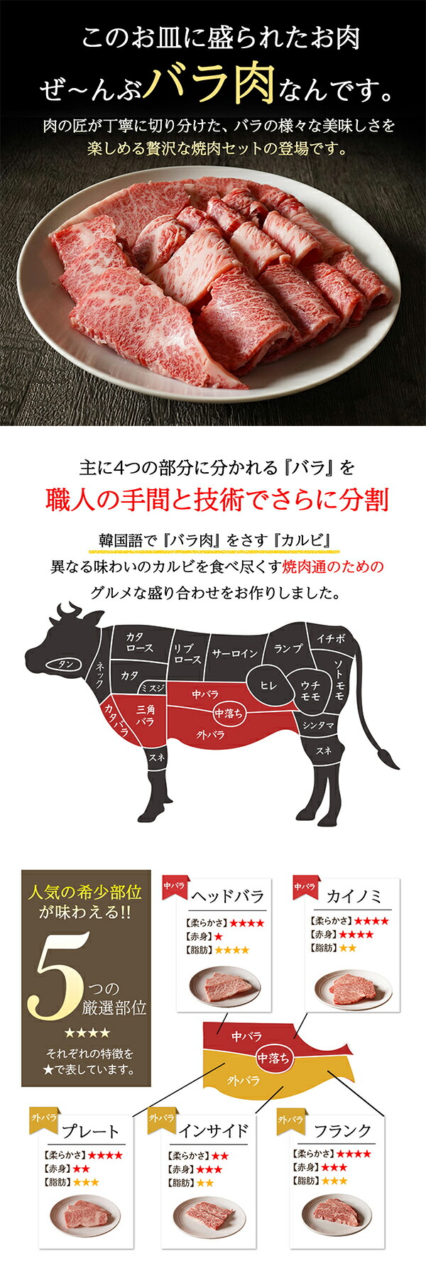 焼肉 黒毛和牛 A5等級贅沢バラ焼肉セット 送料無料