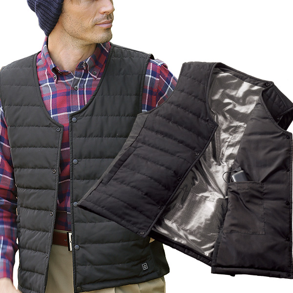 ■スイッチを押してすぐに暖かい中綿入りヒートベスト