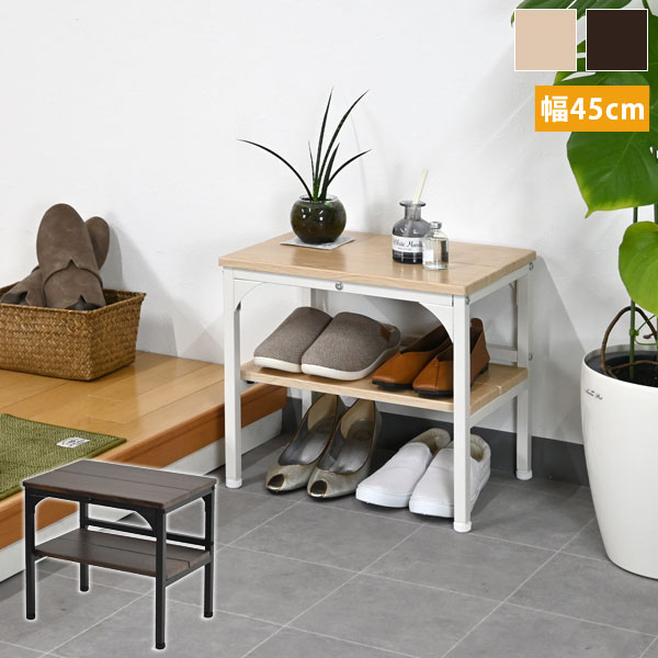 靴の脱ぎ履きにあるとうれしい玄関ベンチ。膝に負担がかかりにくい高さ設計で立ち上がりもスムーズに。ベンチがあればロングブーツもラクラク。お出掛け前や帰宅時の鞄などの一時置きスペースとしても便利です。ベンチ下の2段の収納スペースには最大4足の靴が収納でき、玄関がスッキリ片付きます。棚板は取り外し可能で、高さのあるブーツも収納できます。アジャスター付きで勾配のある玄関でも水平に設置できます。シンプルなデザインだから、使い方はあなた次第。いろんなシーン・用途で使えます。カラーはダークブラウンとナチュラルの2色展開。設置スペースに合わせて幅45cm・幅60cmの2サイズからお選びいただけます。