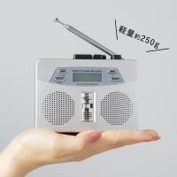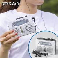 手のひらサイズで簡単操作なお散歩ラジカセ。両耳イヤホン付きで、高音質ダブルスピーカー搭載!便利なベルトクリップも付いています。懐かしのカセットテープ再生はオートリバース式で、ラジオはAMが入りにくい時に対応するワイドFMまで搭載した最新モデル。時計やアラーム機能、録音もできる充実っぷり。分かりやすい日本語表記で、防災用に備えておくのもオススメです。