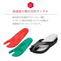 人体工学に基づき独自設計された足袋型アウトソールに通常のインソール+2種類のマッサージ(指圧代用器)インソールを備えた、新感覚のリフレッシュ・フットウェア。足袋型なので自然と足指を開いて着用・歩行でき、リラックスした履き心地を実現。特殊発泡樹脂のほど良い弾力性と指圧ツブにより、歩行時にまるで手もみのようなちょうど良い刺激が得られます。つま先やかかと部分はしっかり守ってくれる安全ガード付きなので、室内はもちろん屋外での使用もOK。アウトドアやレジャー、水辺などでも気軽に着用できます。丸洗いOKなのでいつも清潔!カラーはブラック・レッド・グレーの3色からお選びいただけます。す。