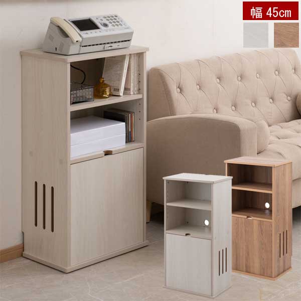 ごちゃつく配線類やルータ機器などをひとまとめにすっきり収納できるルーターステーションボックス。コンパクトで配線しやすく簡単に隠せてインテリアの邪魔にならないデザインです。6連電源タップや光電話ルーターなど収納してFAX台としてもお使いいただけます。ヴィンテージオーク、ホワイトウォッシュの2カラーよりお選びください。