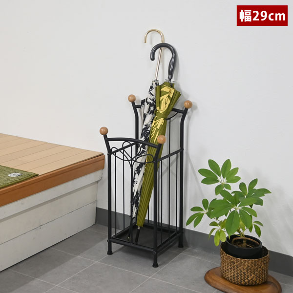 天然木の丸い木玉がアクセントのレインラック。圧迫感のないコンパクトなデザインで玄関がスッキリ片付きます。水受けの樹脂製トレーは取り外しができるので、溜まった水を捨てることができます。脚部はガタつきを防ぐアジャスター付き。同シリーズのスリッパラックと合わせてお使いいただくと統一感のあるお洒落な空間が完成します。