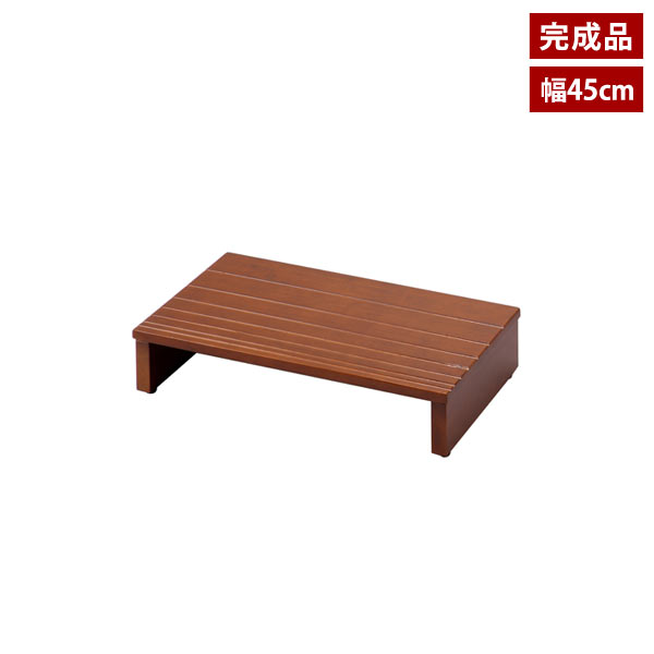 年々、足腰に負担を感じさせる玄関の段差。玄関台を置くことで足腰への負担を軽減してくれます。小さなお子様やご年配の方、ペットの昇降サポートにもおすすめです。天板下はサッと出し入れできるシューズ収納に最適。限られたスペースを有効活用でき、すっきり整頓された玄関をキープできます。天板の表面に溝をつけることで滑りにくくなっています。耐荷重は安心の約80kg。男性の方でも安心です。サイズはご自宅の玄関にぴったりのサイズをお選びいただけるように、幅45cm、60cm、90cm、120cmの豊富な4サイズ展開です。シンプルなデザインなのでサイズ違いを組み合わせて設置しても◎。届いてすぐに設置できる完成品です。