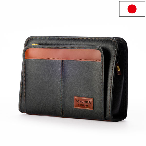 重厚感のある佇まいで落ち着いた雰囲気のセカンドバッグはカッチリした形状で豊岡の職人ならではの造り。A5サイズが収納可能でスマートフォンや財布など、身の回り品を収納できる手頃なサイズ。内側には多数のポケットがあり、前ファスナーポケット内にもオープンポケットを4つ備え、小物の整理がしやすい仕様になっています。ファスナーは滑らかな開閉を実現するYKKファスナーを採用しています。キズや汚れが目立ちにくく、ビジネスやフォーマル、休日の外出などにも気兼ねなく使える便利なセカンドバッグです。