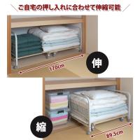 布団を押入れに出し入れするのは大変、掃除の度に布団を一つ一つ運びだすのは面倒、自宅の押入れにぴったりのサイズがなかなか見つからない・・・。そんな時におすすめのキャスター付き伸縮式布団収納ラックです。放湿性に優れた桐材すのこは通気性に優れ、湿気から布団を守ります。すのこ状の底面が自在に伸縮し、最大幅が169cmで収納力も抜群です。日本に多い押入れの奥行きに合わせて奥行が68.5cmです。キャスター付きで布団の取り出しが簡単で布団をまとめて移動することができます。楽に動かせるからお掃除もはかどります。