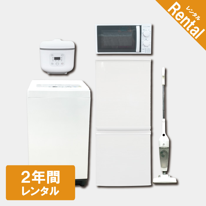 家電レンタル 5点セット 冷蔵庫 洗濯機 電子レンジ 炊飯器 掃除機 2年間 一人暮らし クリーニング済み 設置取付配送