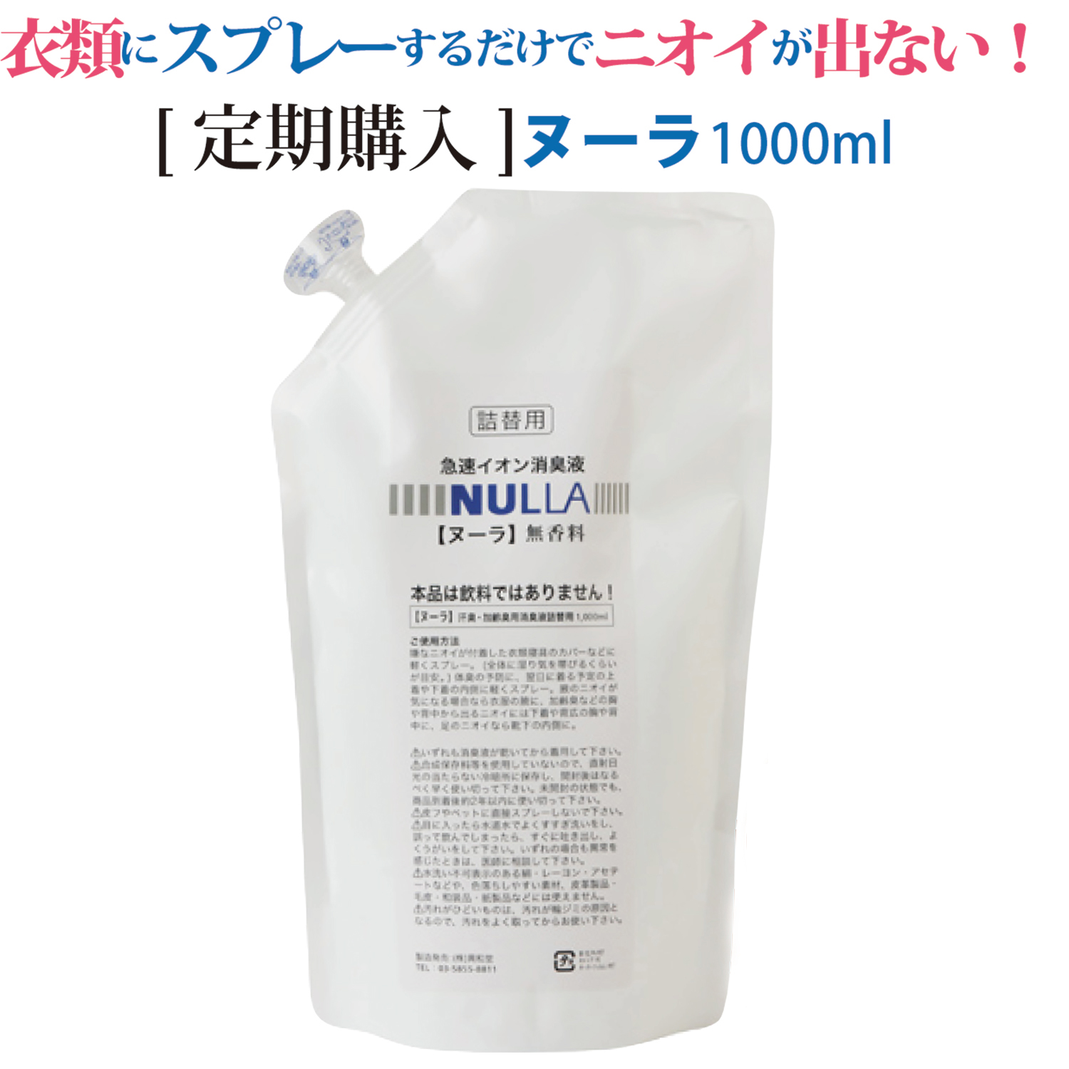 【定期購入】消臭 スプレー 加齢臭を消す 防臭 対策 方法 男性 汗臭い 臭い消し 衣類 | 急速イオン消臭スプレーヌーラ(詰替用)1000ml