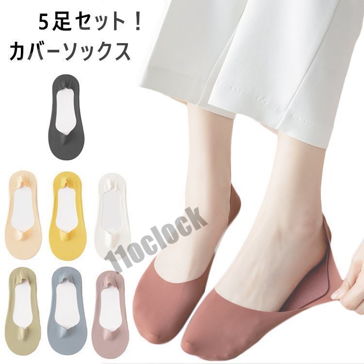フットカバー レディース カバーソックス 接触冷感 靴下 5足セット 涼しい 浅履き 夏 ひんやり 見えない 脱げない 滑り止め おしゃれ 無地 かわ
